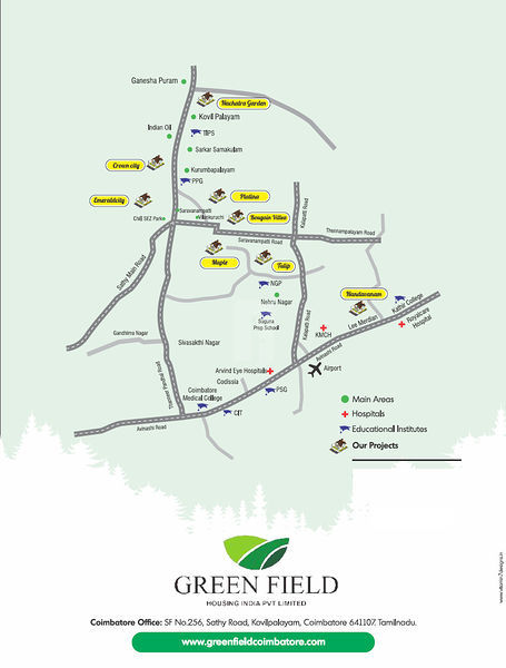 Fair Land is surrounded by number of renowned educational institutions, mostly engineering colleges. The Coimbatore International airport is just 18km from the project. Top medical facilities available like KMCH Kovilpalayam Hospital and Aravindan Nursing Home are just few minutes away from the project location.