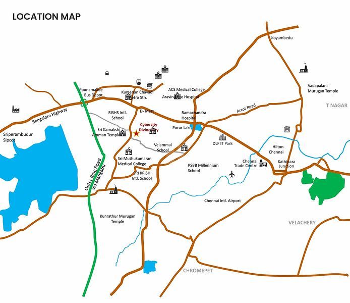 10 mins from Mt. Poonamallee Road, ORR and Bangalore Highway NH4