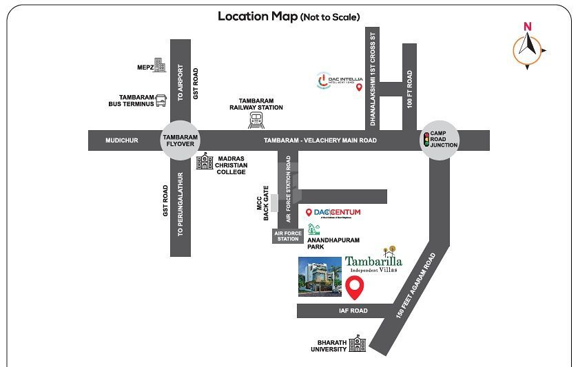 DAC Tambarilla is a project by DAC Developers in Chennai. It is a Under Construction project. DAC Tambarilla offers some of the most conveniently designed Villa. Located in Selaiyur, it is a residential project. It has 43 units. DAC Tambarilla offers some of the most exclusive 3 BHK. As per the area plan,The address of DAC Tambarilla is Mahadevan Nagar, I.A.F Road , Near Bharath University (Camp Road), Selaiyur.DAC Tambarilla ensures a coveted lifestyle and offers a convenient living. It offers facilities such as Gymnasium, Power Backup. For families with kids, there is Children's Play Area, nearby apart from Swimming Pool.This project has been developed by DAC Developers. DAC Developers is a reputed developer firm with experience in developing livable spaces for homebuyers since 2010.Selaiyur is well-connected to other parts of city by road, which passes through the heart of this suburb. Prominent shopping malls, movie theatres, school, and hospitals are present in proximity of this residential project.