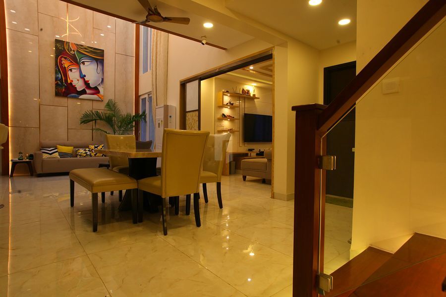 Ground Floor Lobby, Steps & Lift Cladding – Engineered marble as per Architect design // Other Floors Lobby, Steps & Lift Cladding – 2' X 2' Vitrified Tiles & Granite Driveway – Interlocking open jointed paver blocks as per architect design // Car Park Area – Granolithic Flooring.