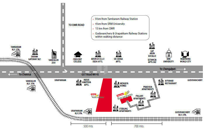 At Swargam, our new flats for sale in Urapakkam, you can find your dream budget home that is replete with the best space utilisation and high-end features. Featherlite Swargam is located just 600 meters off GST road and is just 9 km from Tambaram. The homes at Swargam are ideal for those who wish to have easy access to the city, and that too without compromising on lifestyle.