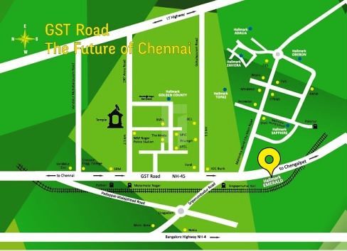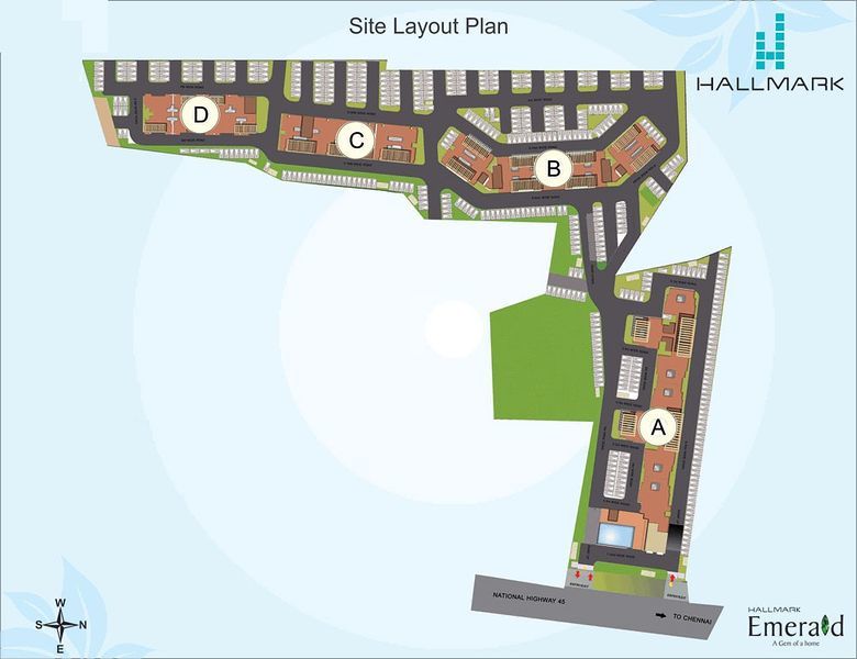 Designed and built by L & T. Like all things precious, Hallmark Emerald is enveloped by a serene living environment that sets it apart from the rest. At the same time, like a precious stone set in a piece of jewelry, it is at the centre of civilization, offering great connectivity. Nestled amidst verdant greenery and not far from a serene natural lake, Hallmark Emerald is set amidst 6.82 acres of beautifully planned and elegantly landscaped terrain. Ensuring that your dream home has a matching environment. Strategically located on Chettipunniyam, GST Road NH45 before the Toll Gate and Chengalpattu, next to the RTO office, it is within walking distance of Paranur Railway Station and right opposite Mahindra World City. There is nothing ordinary about Hallmark Emerald.