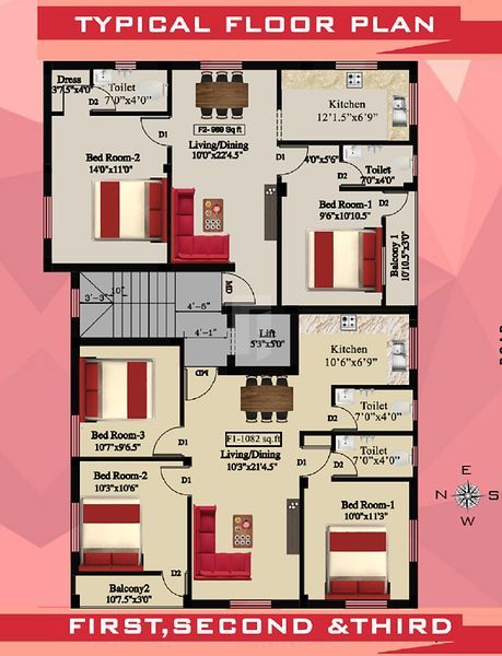2 x 2 Vitrified tiles for living, dining, bedrooms, kitchen  and  walkway all rooms