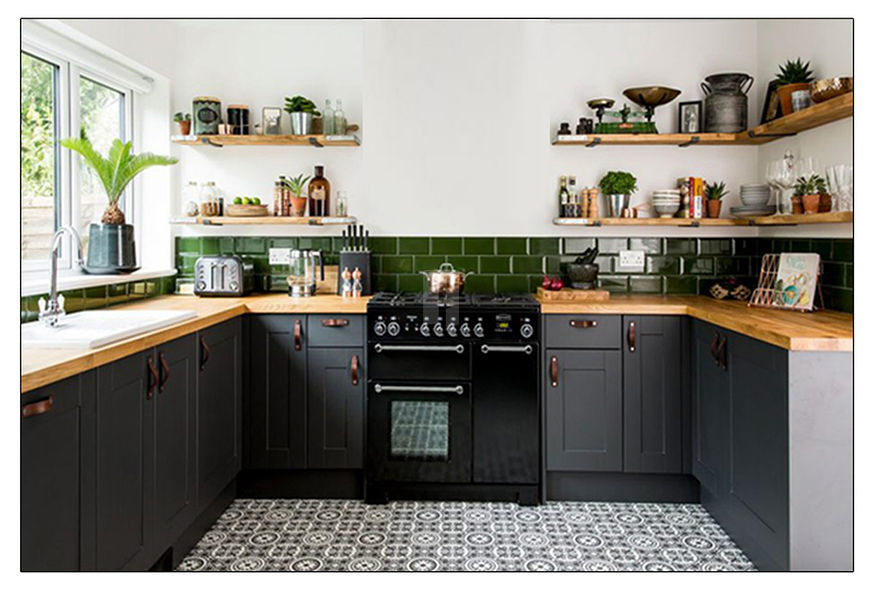 Black granite kitchen counter top, Stainless Steel Sink, Wall Tile up to 2 feet Height.