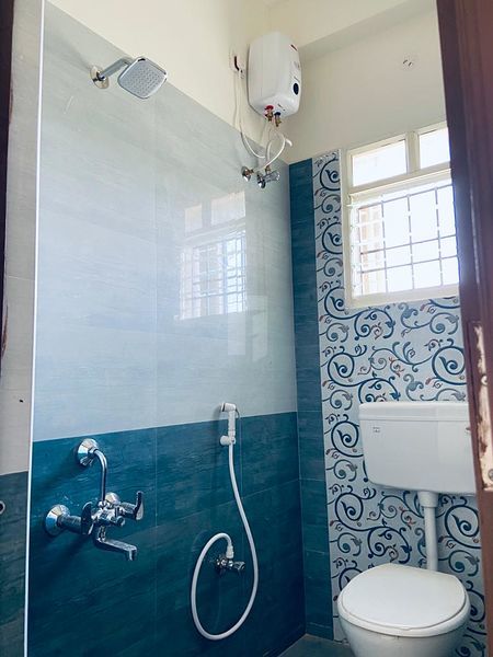 Walls In Glazed Tiles Upto Seven Feet High. One European Water Closet In One Bathroom And One Indian Water Closet In Another Bathroom With A Provision For An Gycer And Exhaust Fan