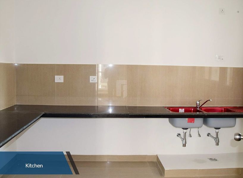 3.4.2 Kitchen:Kitchen counter top of highly polished bull-nosed granite. Double bowl,single drain Stainless steel sink in 2BHK,3BHK,4BHK units, Single bowl, single drain Stainless steel sink in 1BHK units.With hot and cold water basin mixer of premium branded CP fittings.Water outlet provision for water purifier above drain board.