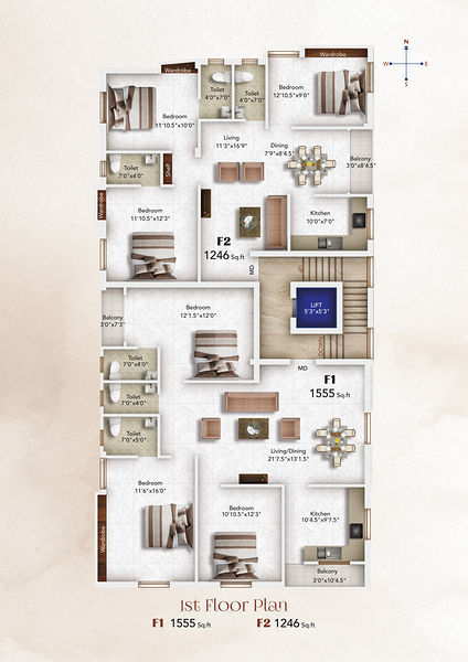 1,2 & 3BHK flat-557,876 & 1555 sqftOnly