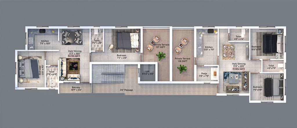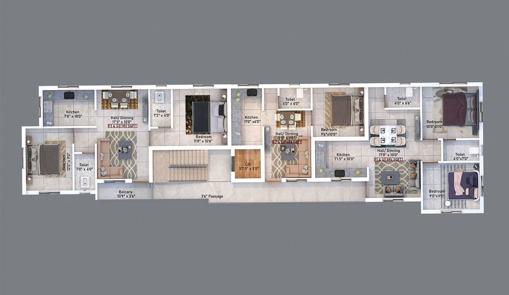 3. One side loft and one shelf unit will be provided in each kitchen and bedroom.