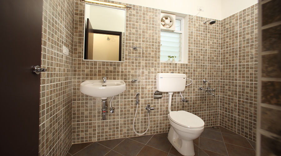 Veneered finished flush door for entrance and painted flush doors for other rooms.