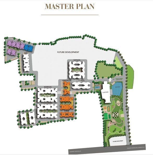 The project offer 1BHK , 2BHK Small, 2 BHK Large, 3BHK Large, 3.5 BHK for the Phase-I development. The 70% open space ensures natural ventilation and lighting in each apartment with the elevated. Podium gardens views. Santorini's competitive pricing for the lavishly buil-up homes are