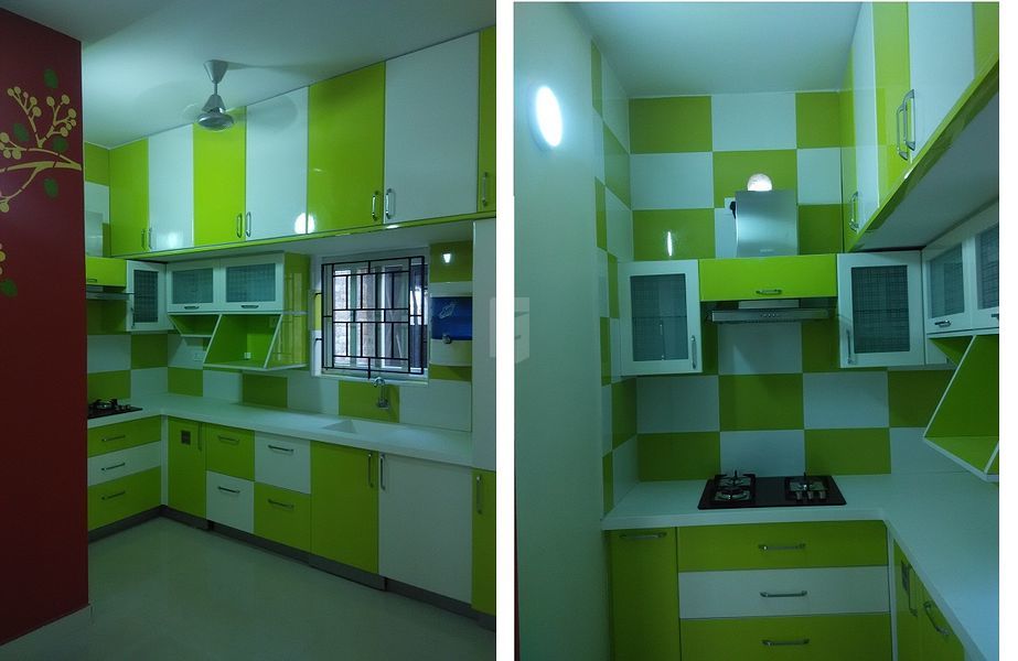 Kitchen Dado: Glazed tiles up to 2 Ft height from cooking top