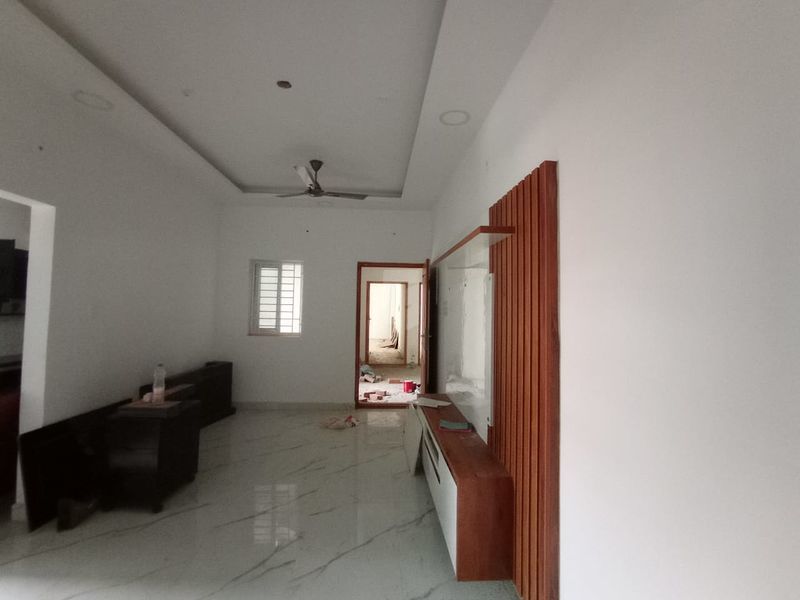 Painting : Two coats of Birla wall putty with Asian Primer Asian tractor emulsion for interior walls, enamel paints for MS grills, Exterior wall painted with Asian weather shield paint.